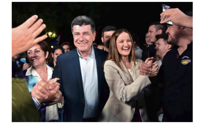 写真1 選挙活動でのアレグレ(左)とヌーニェス(右)(2023年4月19日 ABC Color/Norberto Duarte )